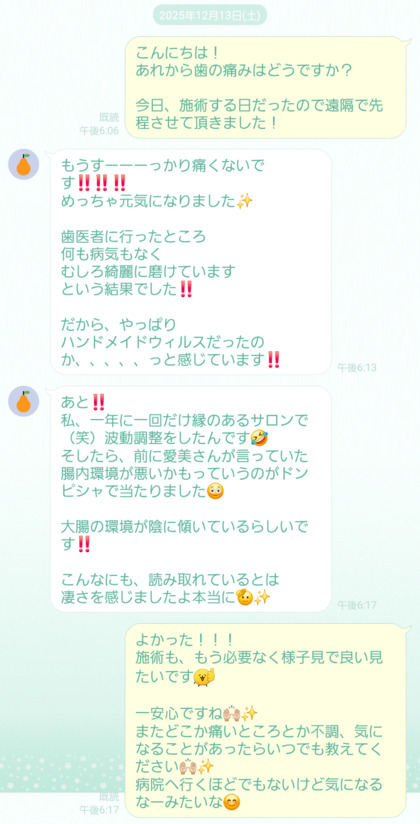 後日、別のサロンで体を見てもらった際にも、以前から愛美さんに言われていた腸内環境の状態をそのまま指摘されて驚きました。