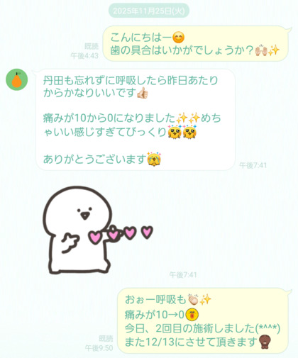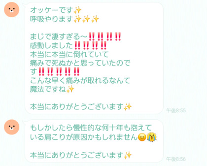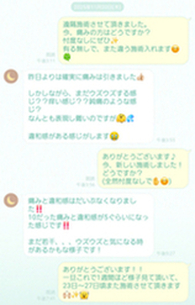 すると、2回目の施術の前日あたりから「なんだか、かなり良くなってきているかも…?」そんな感覚が出てきて。